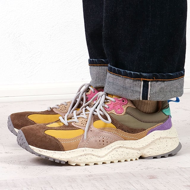 返品送料無料 フラワーマウンテン Flower MOUNTAIN スニーカー ウェーブス [FM126007 FW25] WAVES メンズシューズ フェス Ocher/Olive