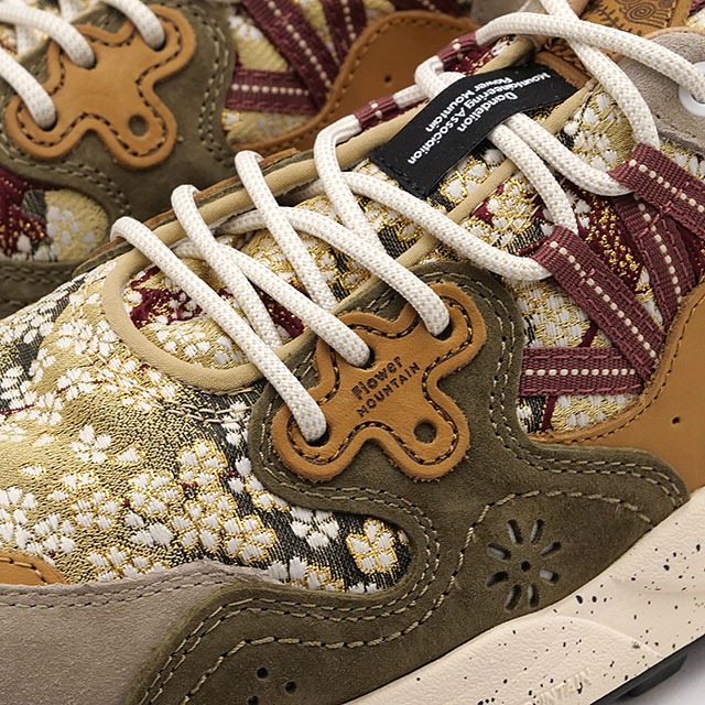 フラワーマウンテン 靴 シューズ フットウェア スニーカー shoes footwear sneaker レースアップ 本革 西陣織 カジュアル ナチュラル レトロ クラシック エレガント ハイキング ブラウン マルチカラー メンズ レディース