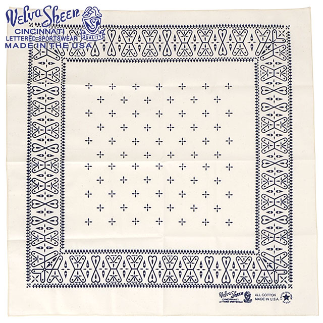 ベルバシーン VELVA SHEEN バンダナ クロス [161516 SS25] BANDANNA (CROSS) MADE IN USA メンズ・レディース アメリカ製 大判 ハンカチ スカーフ WHITE 【メール便配送】 正規取扱店