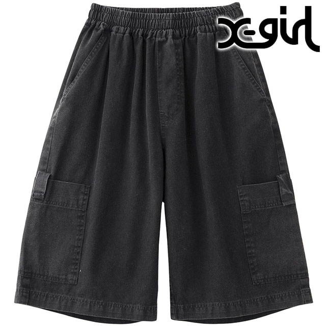 【SALE】エックスガール X-girl フェイデッドフェイス イージーハーフパンツ [105252031002 SU25] FADED FACE EASY HALF PANTS レディース ボトムス ショートパンツ xgirl BLACK ブラック 黒 正規取扱店【ts】