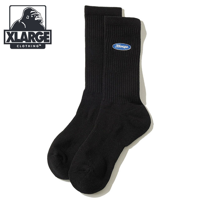 エクストララージ XLARGE オーバルロゴ エンブロイダード ソックス [101252054006 SU25] OVAL LOGO EMBROIDERED SOCKS メンズ x-large エックスラージ 靴下 クルーソックス 1足 BLACK 【メール便配送】 正規取扱店