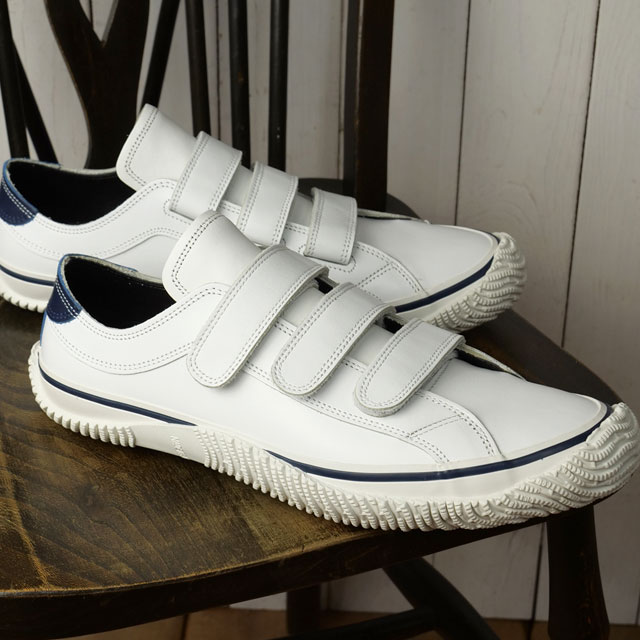 靴/シューズ/フットウェア/shoes/sneaker/footwear/ベルクロ/面ファスナー/レザースニーカー/本革/牛革/国産/日本製/メイドインジャパン/メンズ/ホワイト/白/ネイビー