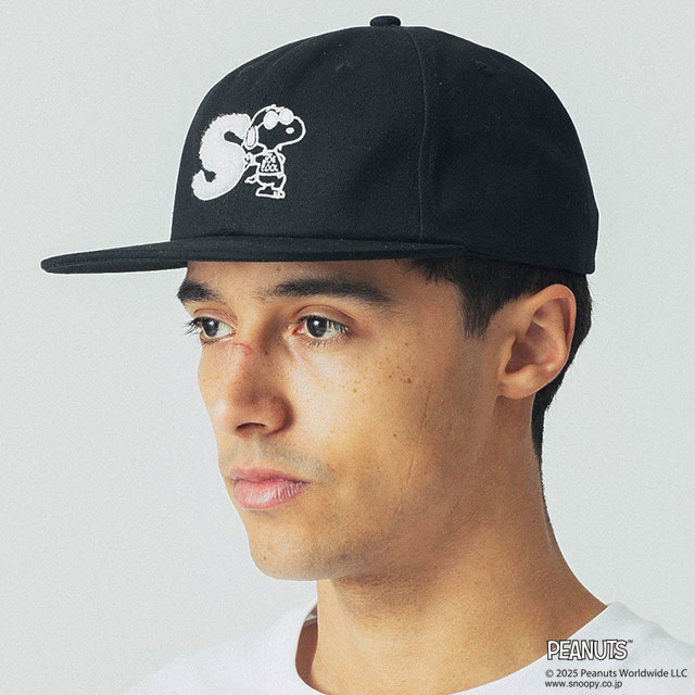 帽子/cap/ロゴキャップ/ストリート/カジュアル/フラットバイザー/刺繍/コラボ/ピーナッツ/スヌーピー/メンズ/黒/ブラック
