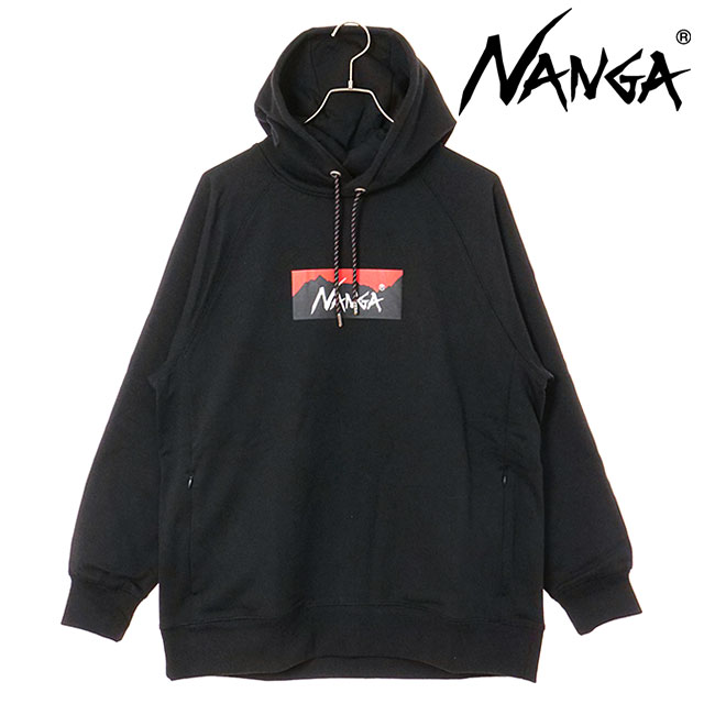 ナンガ NANGA エコハイブリッド ボックスロゴ スウェットフーディー [NW2441-1F002 FW25] ECO HYBRID BOX LOGO SWEAT HOODIE メンズ トップス プルオーバー パーカー 長袖 ラグランスリーブ P.BLK 正規取扱店