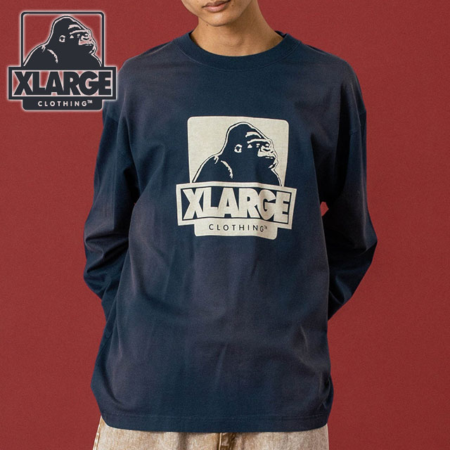 エクストララージ XLARGE ロングスリーブTシャツ [101254011007 FW25] DISCHARGE PRINTED OG L/S TEE メンズ トップス 長袖 クルーネック ネイビー 正規取扱店