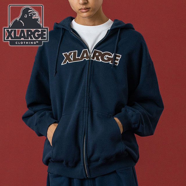 エクストララージ XLARGE フーデッドスウェットシャツ [101254012012 FW25] STANDARD LOGO ZIP UP HOODED SWEATSHIRT メンズ パーカー ネイビー