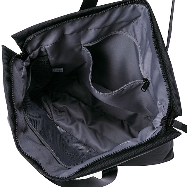 素材には、高い強度と軽さを両立した840デニールのジュニアバリスティックナイロンを採用しています。本体内部にメッシュのスリットポケットとボトルポケットを装備。フロントには多彩なポケットを備え、さまざまな小物の収納に便利です。ソリッドながら、男女ともに使いやすいカジュアルな雰囲気のデザインで、フォーマルからカジュアルまで活躍するアイテムです。